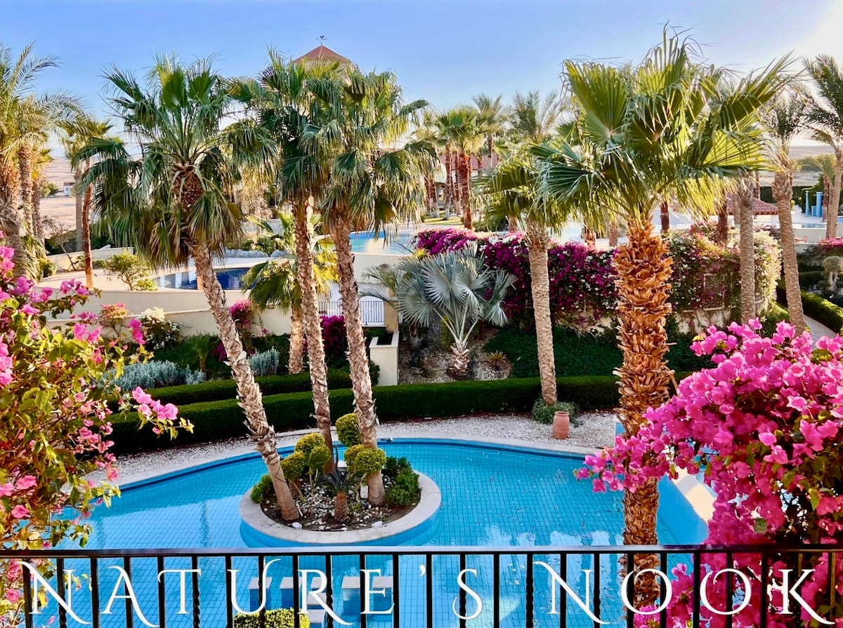 Enjoy a peaceful stay in this beautifully furnished studio located in the heart of Veranda, Sahl Hasheesh — one of the most elegant and well-maintained resorts in the area. The studio features an open terrace overlooking lush greenery and the swimming pool, perfect for morning coffee or a relaxing evening after the beach. Fully equipped and thoughtfully designed, the space is ideal for couples or solo travelers looking for comfort, privacy, and a resort-style atmosphere.