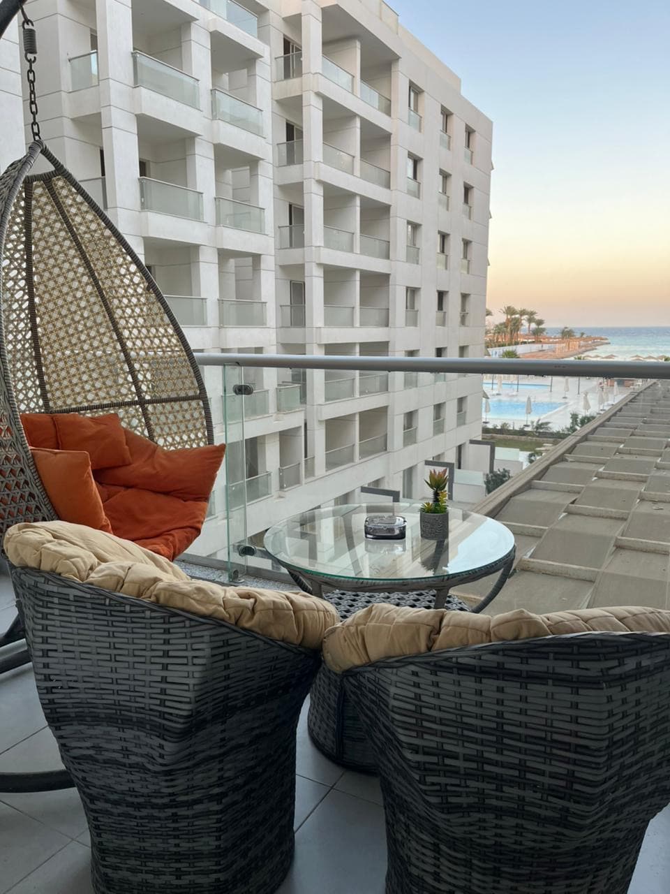 Relax in our cozy sea-view studio in central Hurghada, right by the Red Sea. Perfect for couples, solo travelers, or small families looking for comfort, great location, and resort vibes near the city center. What You'll Like: Free private beach and swimming pool access Red Sea and pool views from your private balcony Prime location on Old Sheraton Street – close to cafes, shops, nightlife & supermarkets Free Wi-Fi, 24/7 security & on-site parking Complimentary shuttle bus within the resort