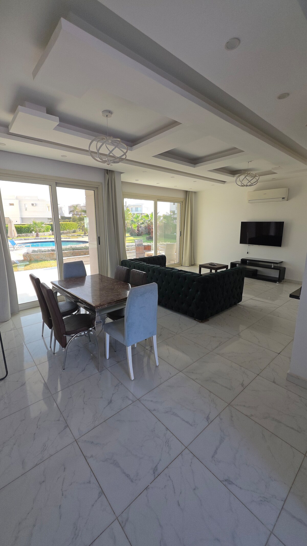 Genieße deinen Aufenthalt in einem großzügigen 220 m² Duplex im exklusiven The View Compound in Old Sheraton. 3 Schlafzimmer, 75” TV, 55” TV in jedem Zimmer, private Gartenfläche (250 m²), voll ausgestattete Küche, Waschmaschine, Geschirrspüler, Parkplatz direkt vor dem Haus. Zugang zu 10 Pools, beheiztem Pool, Tennisplatz und Strand (5–6 Minuten zu Fuß). 24/7 Security für maximale Sicherheit und Komfort.