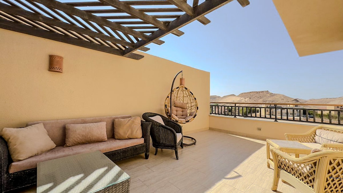 Keep it simple at this peaceful and centrally-located place. Its last level floor so you can enjoy with the special privacy ,quite and amazing with wonderful sky and garden and desert view then you staying in the center of touristeque area if you cross the street you will find all fast and delicious restaurant , then you will find a lot of access beaches by discount by us, you will find a beautiful 3 swimming pools , you will enjoy with the beautiful big Terrace