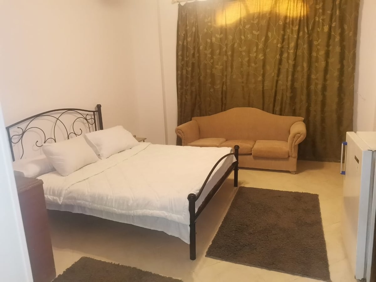 Al-Dau Heights is a gated property with holiday flats with its own swimming pools and kids playing area and even a new exclusive mall (starbucks, restaurant, clothing and shops, kids indoor play area).It is less than 1 Km to beach. The studio 63 square meters on the Ground floor with direct Garden view, balcony ,air condition, fully equipped modern kitchen and a washing machine Bedroom has a big double bed (160x200) and sofa bed for more 2 children , smart TV and Dining Table , Bathroom