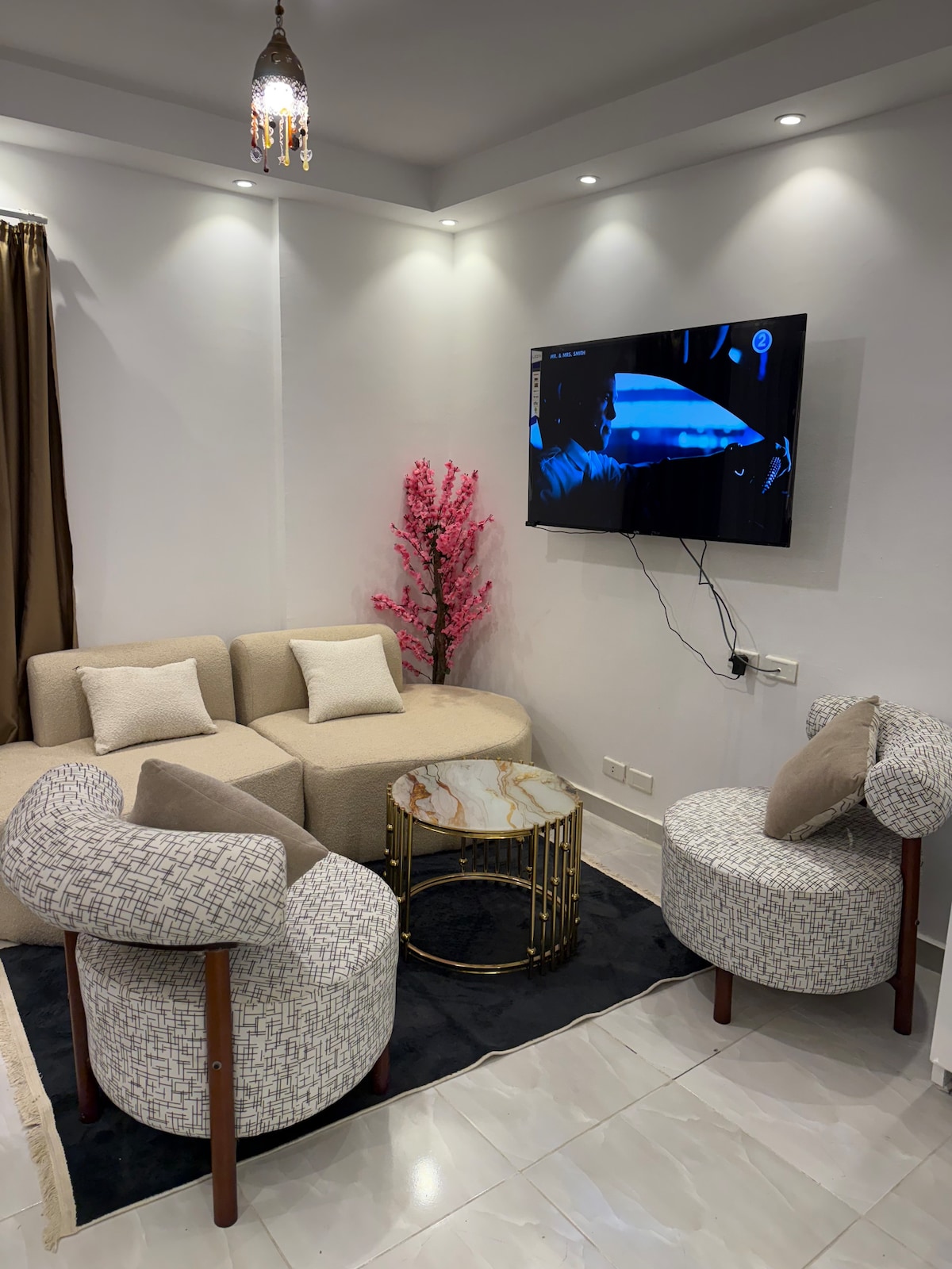Enjoy a stylish and romantic experience at this centrally-located place. In front of Dream Beach, only 50 feet from Hurghada touristic Villages Street Modern furniture with a very speed Wifi, Netflix and youtube This apartment contains special kitchen equipments, Microwave, Washing machine, Turkish coffee automatic machine, kettle and full coffee and tea complement Also Iron and ironing board and a desk for Remote working Romantic one Bedroom for lovers and one Sofa Bed