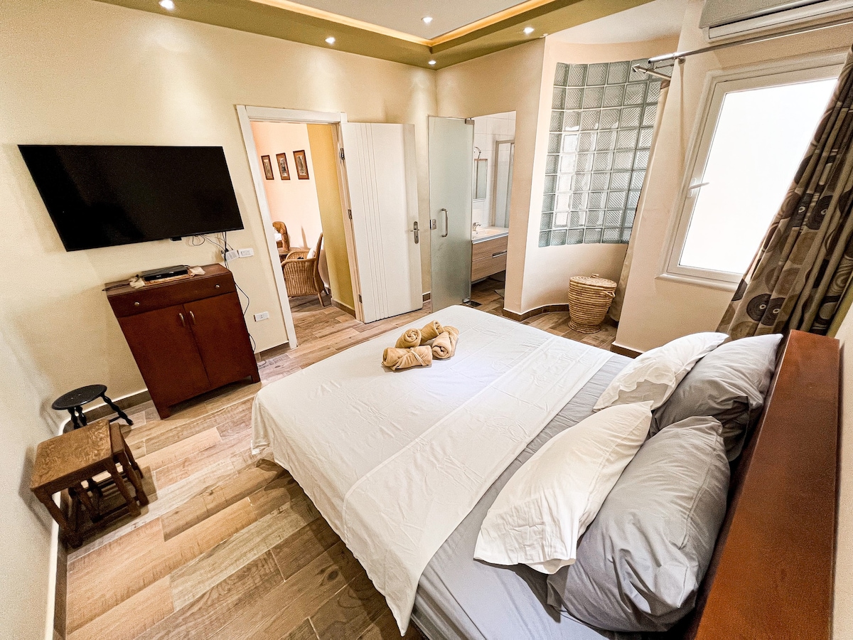 Relax in our cozy sea-view studio in central Hurghada, right by the Red Sea. Perfect for couples, solo travelers, or small families looking for comfort, great location, and resort vibes near the city center. What You'll Like: Free private beach and swimming pool access Red Sea and pool views from your private balcony Prime location on Old Sheraton Street – close to cafes, shops, nightlife & supermarkets Free Wi-Fi, 24/7 security & on-site parking Complimentary shuttle bus within the resort
