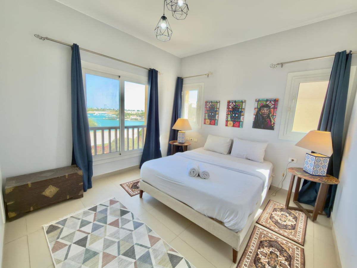 One of very few "full sea view" apartments in El Gouna If you want to enjoy a charming Sea view from bedroom, living room, or even the kitchen then this is the place you are looking for 1 min. walk to the beach 1 minute walk to the huge swimming pool 3 min. walk to the kiting club Relax and have a swim in the private beach or any one of many of the largest swimming pools in El Gouna. Free beach & free swimming pools Access