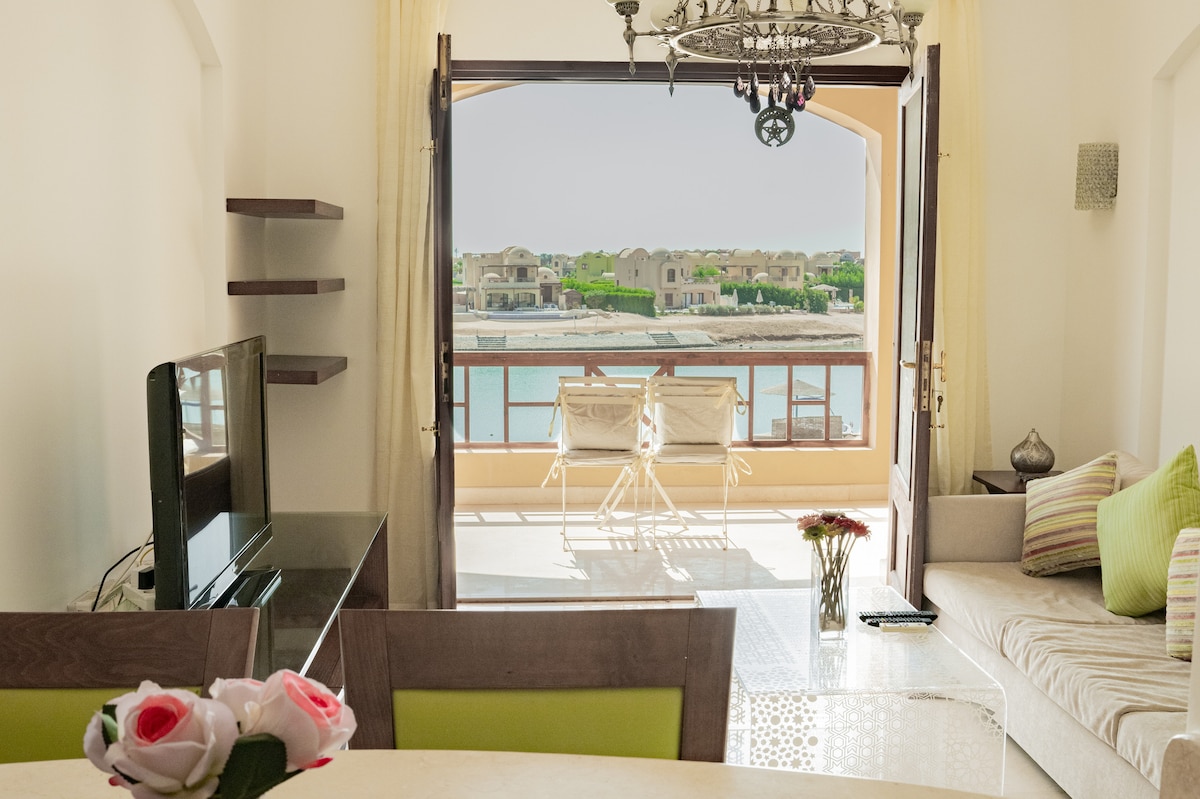 Hurghada海滨3卧室三人小屋,无线网络,海景!