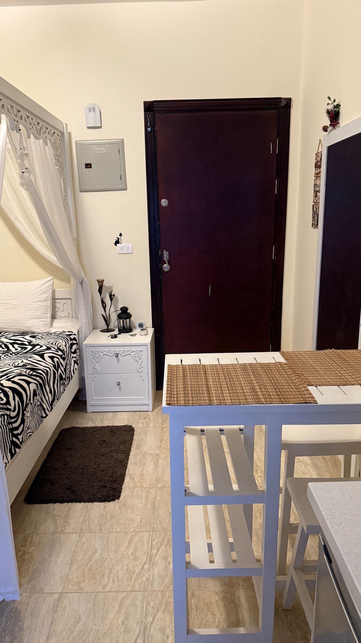 This stylish place. Quiet,clean, 24-hour security, private beach, swimming pools, Kid’s area, suitable for honeymoon, friends and for family vacations, calm and relaxation.The apartment is located 10 minutes by car to the heart of Hurghada, small aquarium, Mina Mosque, the tourist marina with restaurants, cafes and souvenir shops, Sheraton Tourist Street,bars, karaoke nights, live band and more There is no balcony, window or view.The apartment is about 30 seconds away from the swimming pool.