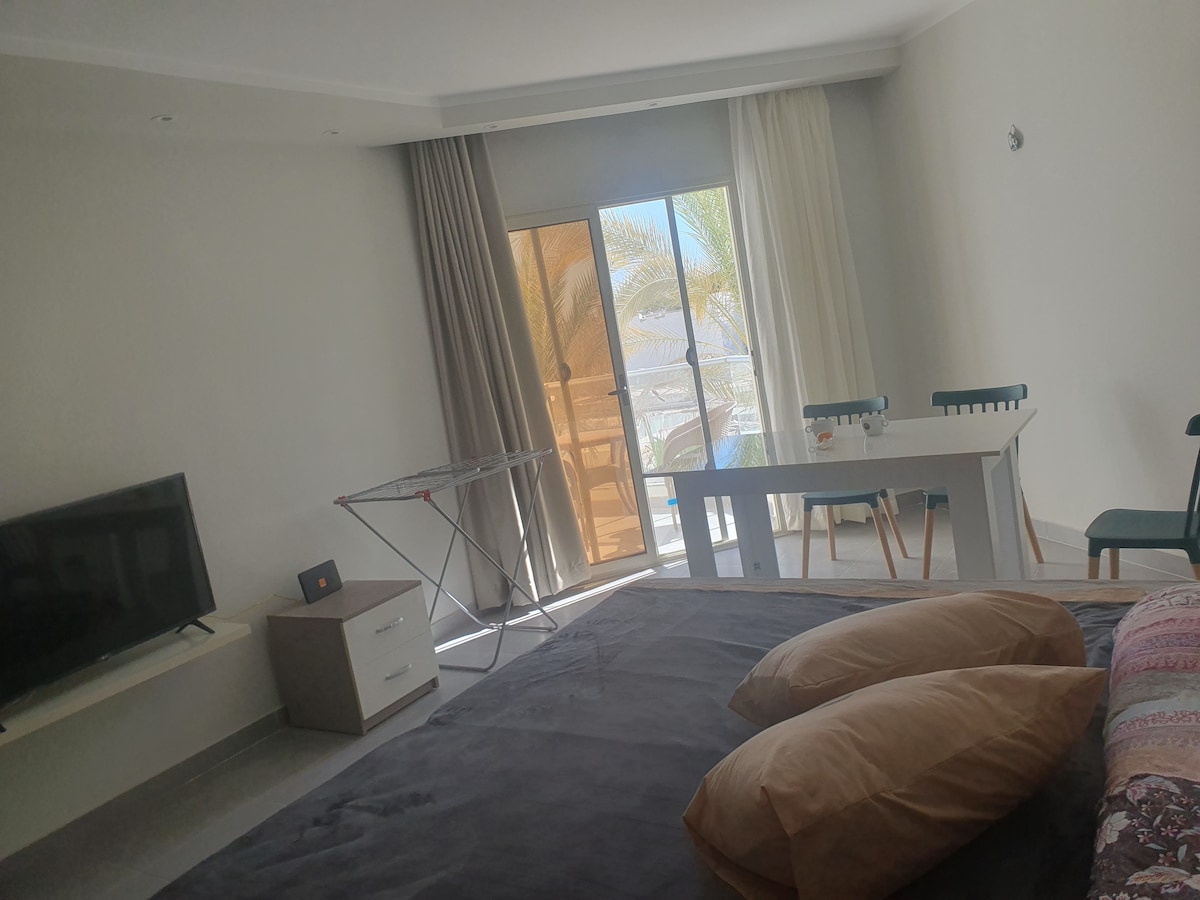Brand new studio with cozy interior modern furniture , huge balcony and private sandy beach, available 3 pools, sport court . The resort is 10 minutes from Hurghada city center and 10 minutes from Hurghada marina, the airport is 15 minutes far away. Golden beaches and guaranteed sunshine are what made Hurghada famous to spend your holiday. The colourful reefs, amazing corals and tropical fish are among the finest in the world. Your perfect holiday by the sea and sunny weather all year