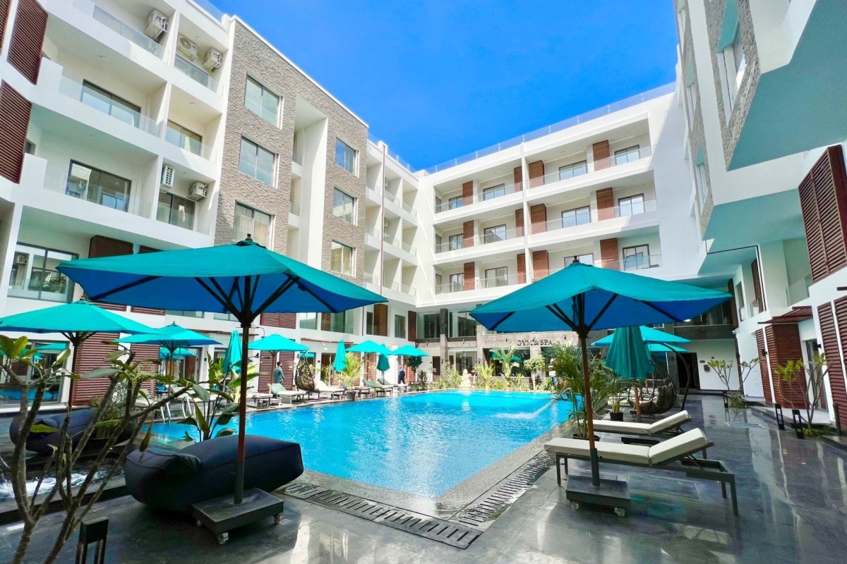 泳池景单间公寓,配备无线网络和智能电视,可通往海滩*