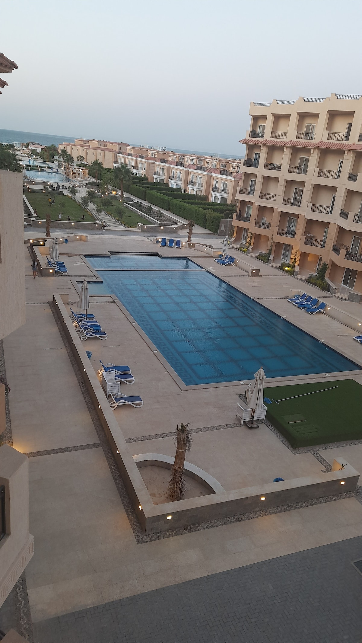 Enjoy the glamour of this stylish, upscale place. Studio new furniture Pool and sea view Private beach Mini aqua park Security 5 minutes from city center