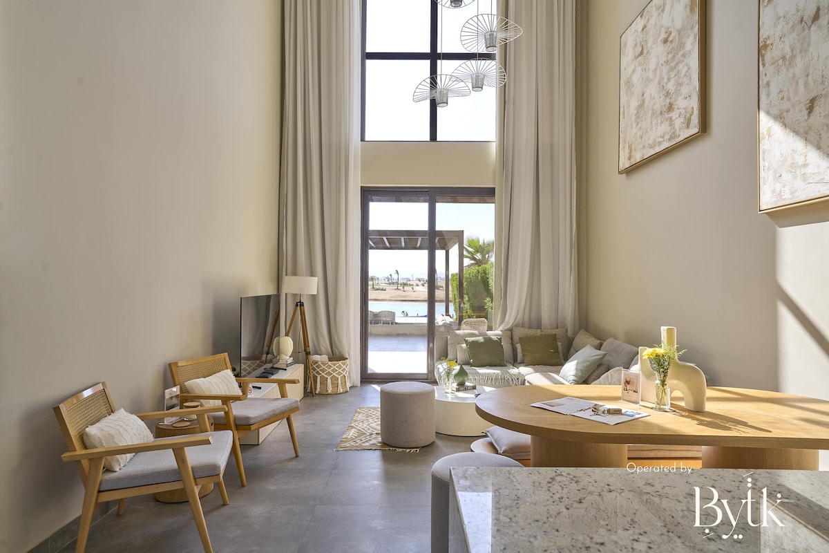 🌊 Brand new ground-floor chalet in Shedwan-Gouna with private garden & direct access to lagoon and pool. 🛏️ 2 en-suite bedrooms: one with a king bed, one with two single beds. 📍 Just 1.6 km to Festival Plaza (GFF), 2.8 km to Marina Abu Tig, 3.7 km to Downtown. 🛋️ Fully furnished, stylish décor, 📶 Wi-Fi, 🍳 equipped kitchen. 👩🏻‍🤝‍👨🏽Perfect for families, couples & festival-goers. ✨ A cozy, convenient stay in El Gouna!