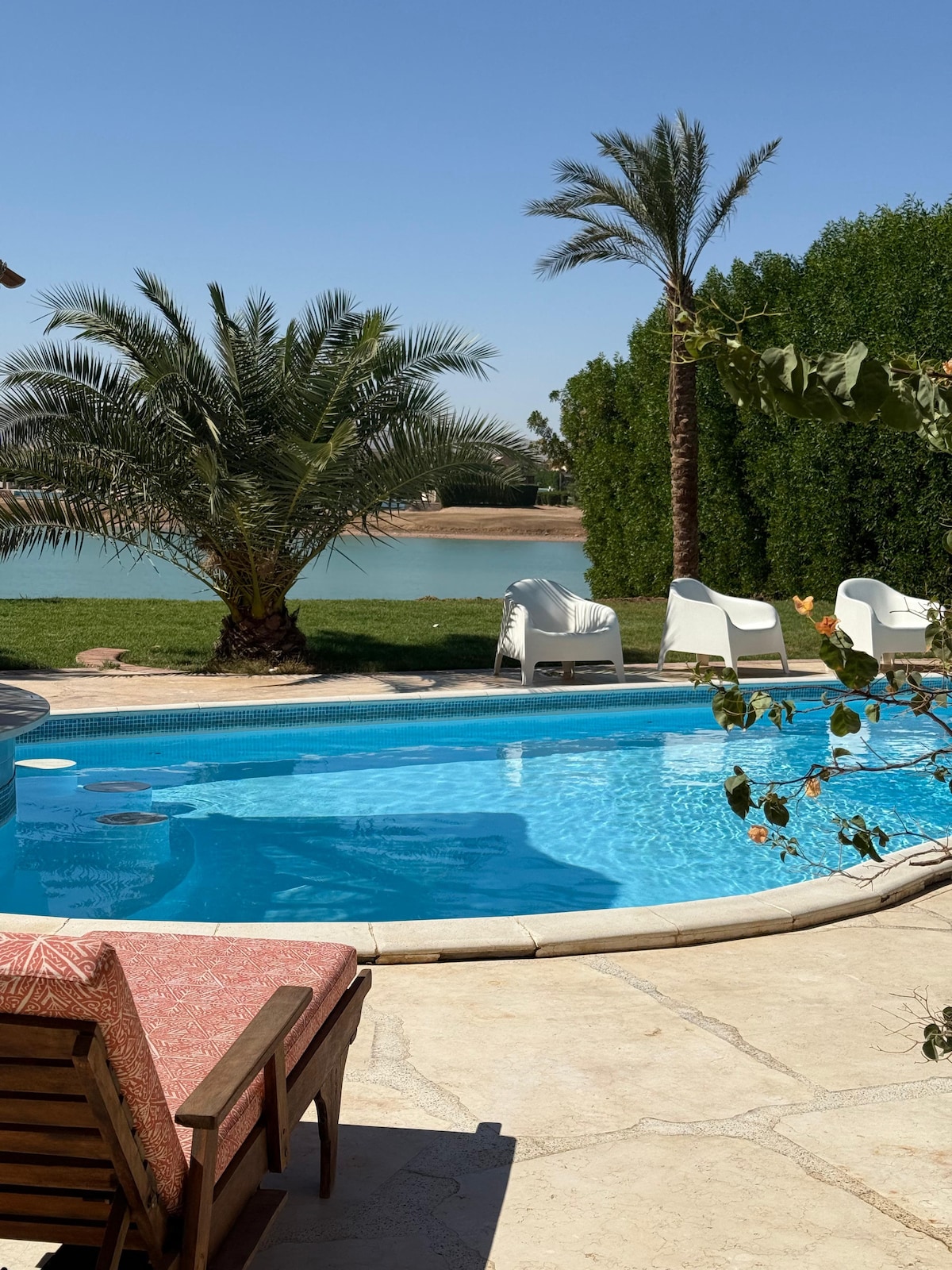 Escape to our Bali-inspired oasis in Egypt, where tranquility meets luxury. Our brand-new 2-bedroom villa boasts modern appliances, custom furniture, and a serene atmosphere. Relax in our heated family size pool surrounded by lush garden feel or relax on designer sofas. Perfect for a family getaway or a peaceful retreat, our oasis offers the ultimate blend of comfort and relaxation and a large smart tv for cosy nights in. Experience the magic for yourself in our little slice of paradise.