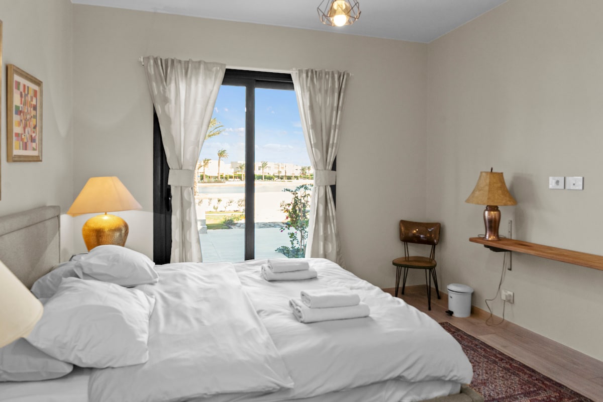 海滩上的宽敞1卧室|白色别墅,El Gouna