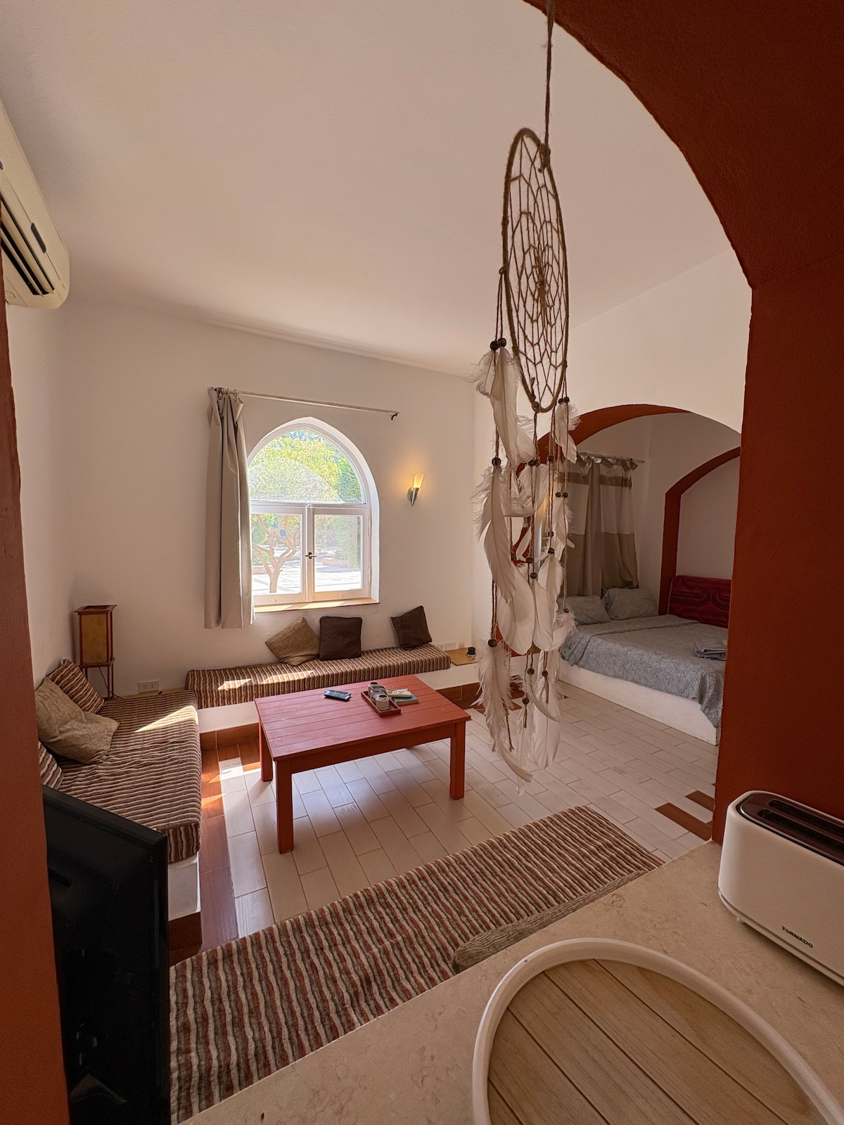 Genießen Sie ein stilvolles Erlebnis in dieser zentral gelegenen Unterkunft, ideal gelegen zwischen Konzerthalle und Abu Tig Marina, 10 Gehminuten von Downtown - mit herrlichem Blick über die Lagune, zum Meer und über die Dächer von Gouna. Es bietet alles, was Sie sich während Ihres Besuchs wünschen. Neben den gemütlichen Innenräumen verfügt dieses Apartment über einen privaten Balkon und zwei private Sonnenliegen an der (gefilterten) Lagune.
