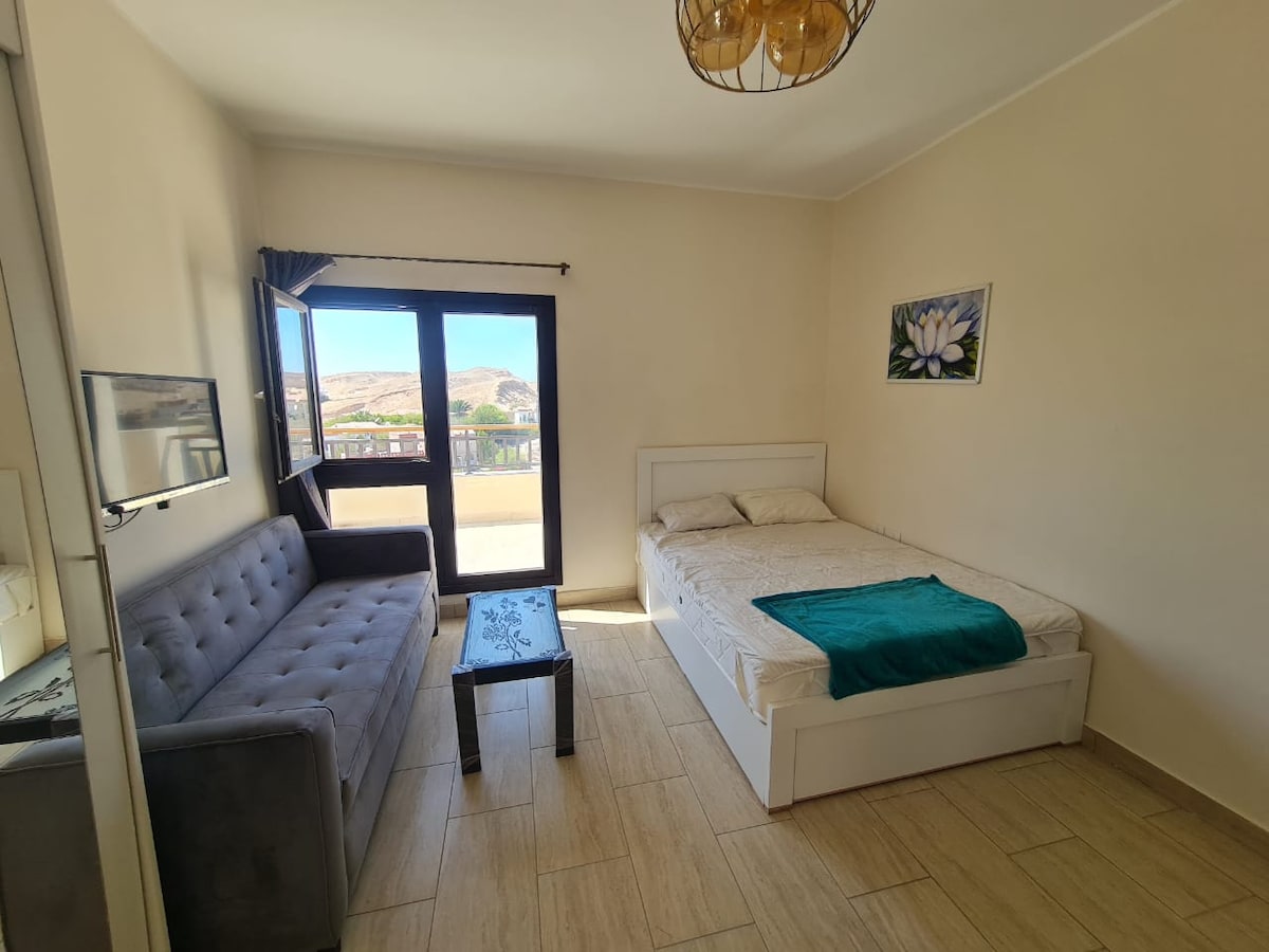 استمتع بتجربة سفر رائعة في هذا المسكن الجديد المكون من غرفة بسرير كبير وصالة بأريكة يمكن استخدامها كسرير وشرفة بإطلالة بحرية رائعة والمجهز بكل الاحتياجات الضرورية بما في ذلك التكييف و الانترنت المستقل .ويتميز بموقعه على البحر مباشرة وامكانية رؤية شروق الشمس وبجوار شاطئين وكورنيش مطل على الشاطئين وبمجرد الخروج من المبنى يمكن الانتقال إلى عدة وجهات خلال 10دقائق او اقل مثل سيتي سنتر مول الذي يعتبر واحدا من أكبر المولات بالغردقة ومارينا الغردقة وكذلك شارع الشيراتون