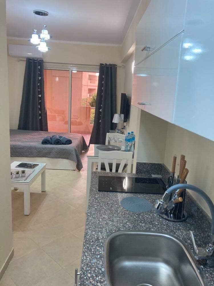 Wake up to your morning coffee ☕ with a magical pool view 🏊‍♂️ from your private balcony 🌴. This stylish first-floor apartment, newly opened in 2025 ✨, combines comfort, relaxation, and modern elegance. Fully equipped kitchen Perfectly set on the vibrant touristic promenade, it places you steps from fine restaurants 🍝, cozy cafés ☕, Carrefour Market, and a Duty Free 🛍️. In just a short walk, reach Princess Beach 🏖️, one of the most beautiful in the area. Designed for unforgettable stays 💫.