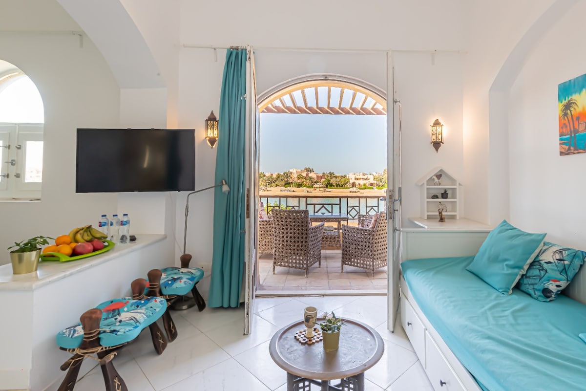 艺术1卧室公寓/免费游泳池和泻湖通道@ElGouna