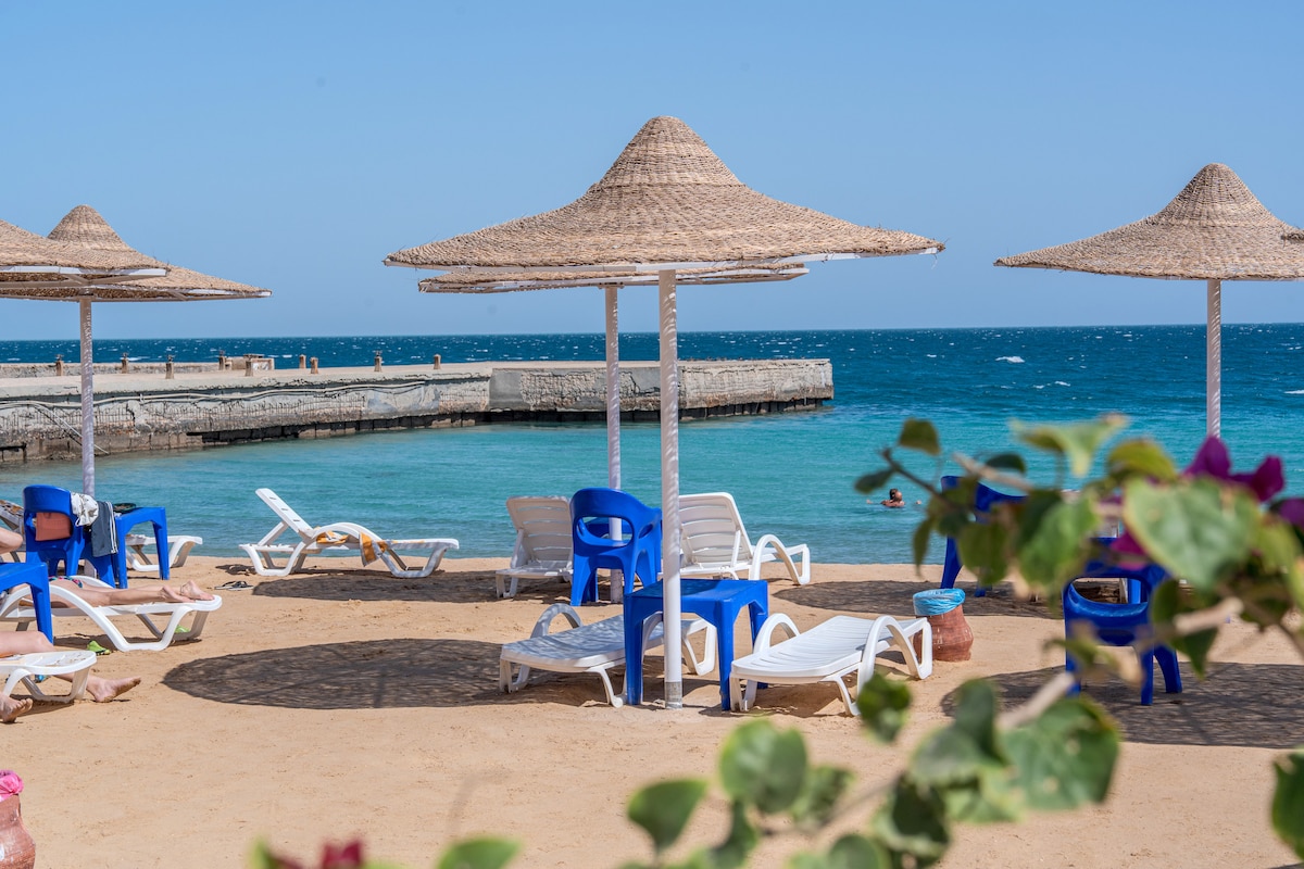 Hurghada Beachfront 3BR Triple Chalet Wi-Fi SeaVw!