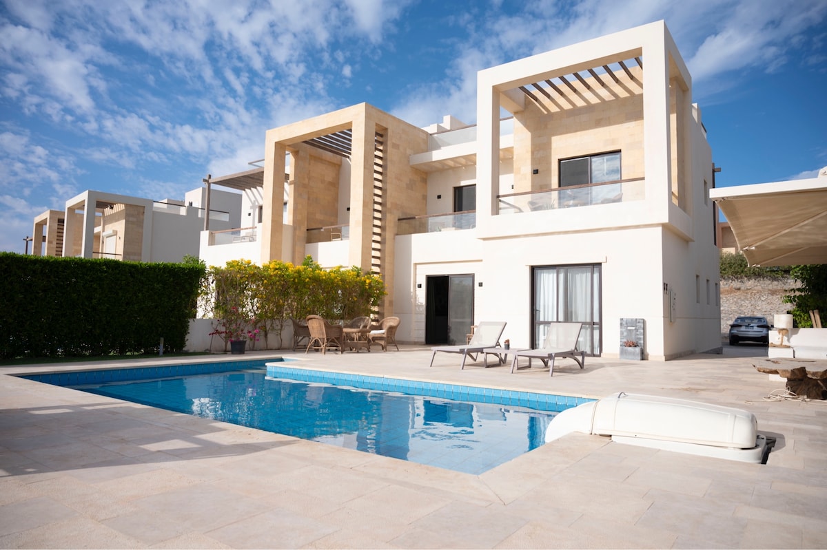 The ideal retreat to discover and enjoy El Gouna, the Red Sea and Egypt. Whether to escape from busy citylife or to enjoy all the Red Sea and the vibrant town of El Gouna has to offer, our 4 bedroom villa will provide the perfect getaway for your family and friends. Each bedroom has an ensuite bathroom with shower or bath. High speed WIFI, private parking, open plan livingspace and large fully equipped kitchen, large private garden and terras with private heated pool, jacuzzi, massage table