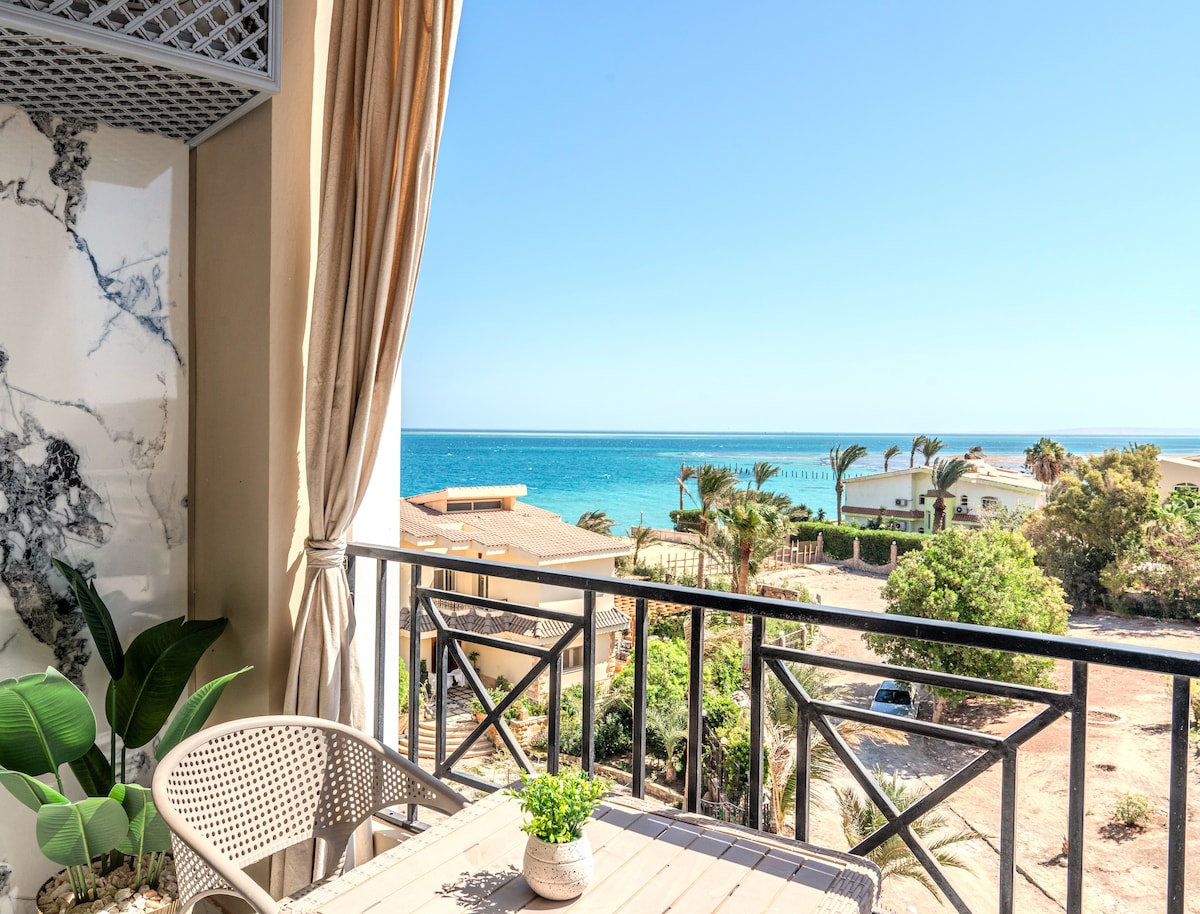 Nirvana is a breathtaking luxurious huge 95m apt that offers fabulous 5* amenities. Set in a Balinese boutique resort. Seaviews from all rooms. kitchen with island. Fully equipped with dishwasher/washing machine/oven. Huge wraparound balcony. Balinese bedroom furniture. Satellite flat screen smart TV. Complementary 40 giga WiFi.Netflix’s. Bose This resort offers 4 pools/1 rooftop/1 heated. Facilities of gym /spa /sauna/aerial yoga/shop and international restaurant. El Gouna 4 min drive.