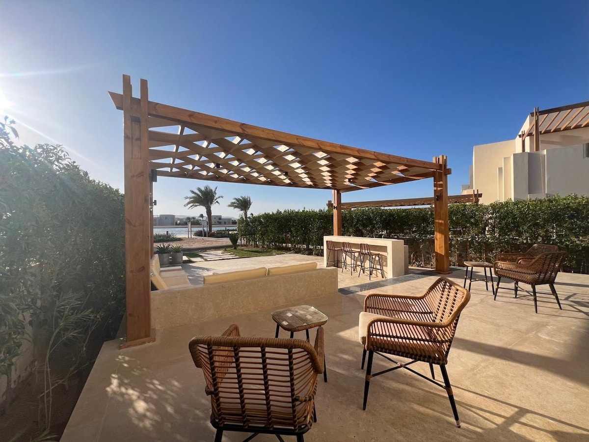 Experience comfort and relaxation in this cozy, well-furnished 3BR townhouse in Shedwan, El Gouna. The home features a warm and inviting interior, plus a charming outdoor area with a bar, perfect for morning coffee or evening drinks. Enjoy stunning lagoon views and direct access to a shared pool, making it an ideal retreat for families or friends.