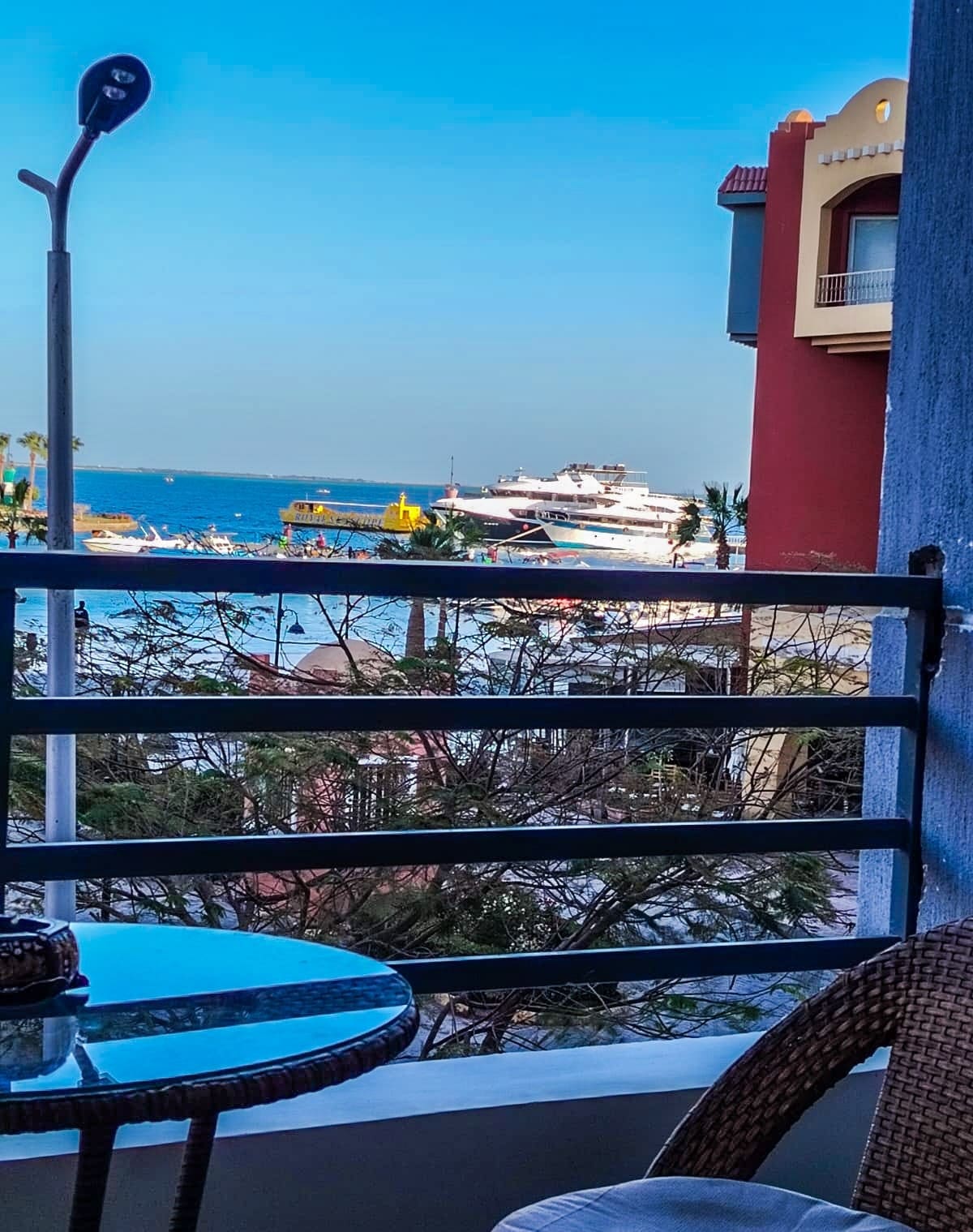 Premium apartment in Hurghada Marina. Brand-new, stylish design, AC in every room, high-speed WiFi, Smart TV, full kitchen. Private rooftop terrace with sea, city & marina view. Professionally managed with high standard, cleaning & support by experienced team. Restaurants, cafés and the marina promenade just steps away.
