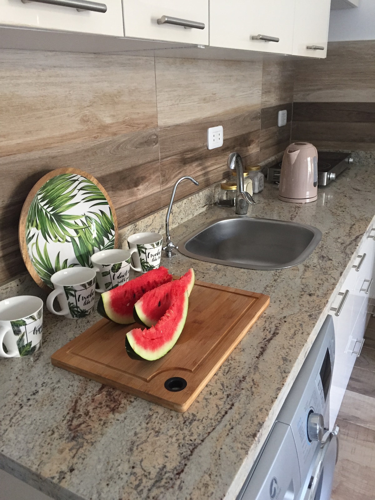 This newly renovated and stylish studio is in the heart of El Gouna Maria/Ocean View Apartments. This apartment is on a high floor and boasts stunning mountain views. Centrally located in the heart of everything! Restaurants, Banks, Bars, Clubs, Shopping, Supermarkets, and much more are just steps away. Elevator in building, no need to worry about carrying your luggage up and down stairs. King bed, fully equipped kitchen, lots of closet space 55'' Smart TV, Netflix, WIFI, Triple Play