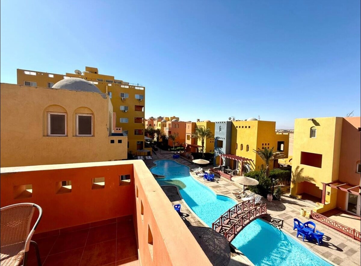 Relax in our cozy sea-view studio in central Hurghada, right by the Red Sea. Perfect for couples, solo travelers, or small families looking for comfort, great location, and resort vibes near the city center. What You'll Like: Free private beach and swimming pool access Red Sea and pool views from your private balcony Prime location on Old Sheraton Street – close to cafes, shops, nightlife & supermarkets Free Wi-Fi, 24/7 security & on-site parking Complimentary shuttle bus within the resort