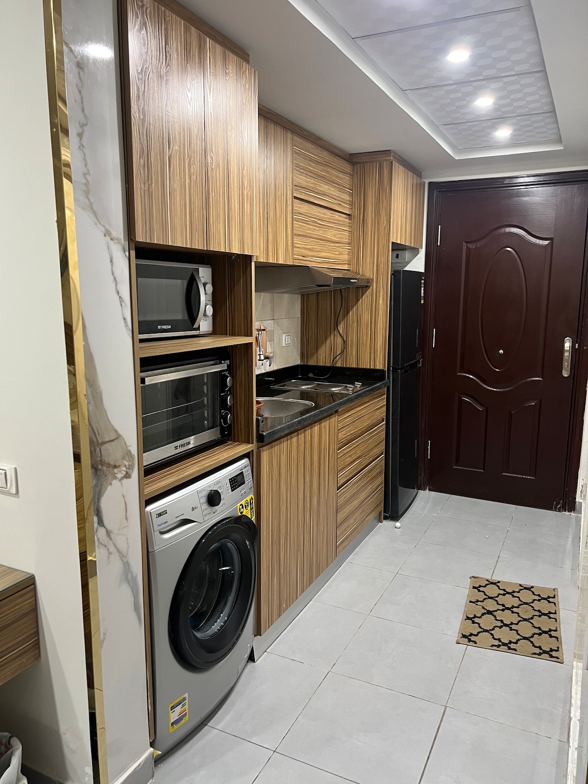 This newly renovated and stylish studio is in the heart of El Gouna Maria/Ocean View Apartments. This apartment is on a high floor and boasts stunning mountain views. Centrally located in the heart of everything! Restaurants, Banks, Bars, Clubs, Shopping, Supermarkets, and much more are just steps away. Elevator in building, no need to worry about carrying your luggage up and down stairs. King bed, fully equipped kitchen, lots of closet space 55'' Smart TV, Netflix, WIFI, Triple Play