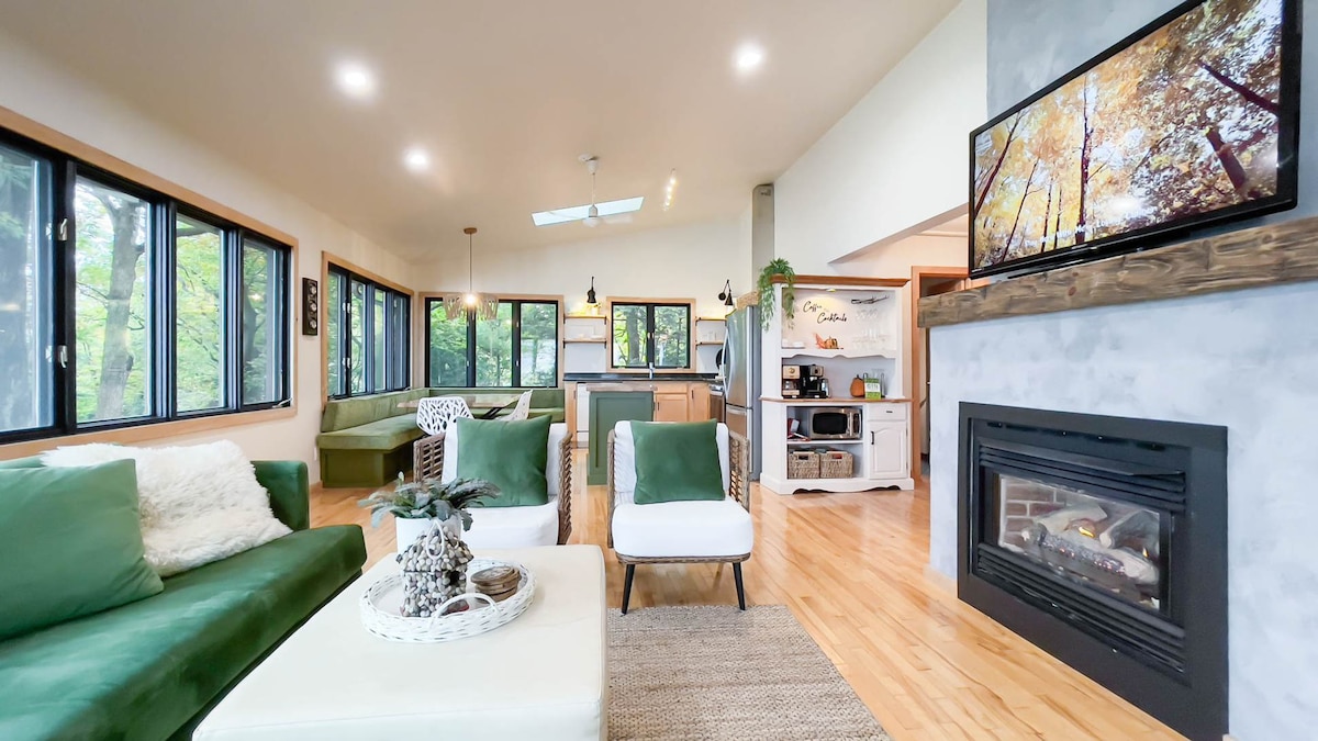 Located in Bluewater Beach - 5 minutes south of Goderich. We are surrounded by nature & bodies of water making it the perfect location for adventure & relaxation! For our beach lovers, we are centrally located near Bayfield and Grand Bend - both of which boast stunning sunsets and beaches. Local wineries/breweries + restaurants await your arrival. During the colder months, cozy up by the fire (inside or out), read a book, play board games or hit the hiking trails!