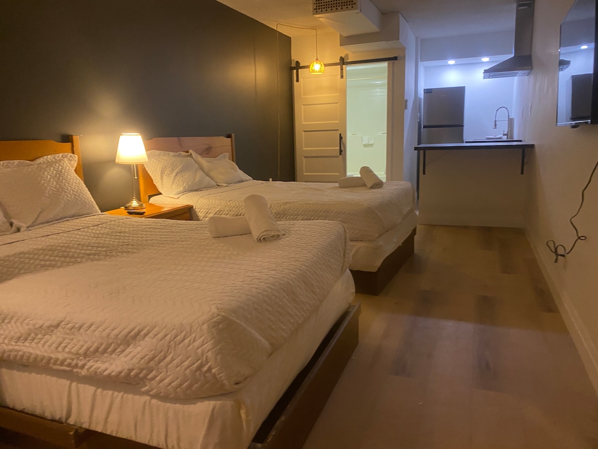 Welcome to our cozy 2-bed balcony suite, perfect for a relaxing stay. Located on the second floor, this spacious suite features two queen beds, a private balcony with scenic views, and a modern bath with both shower and tub. Ideal for families or friends, the suite offers all the comforts you need. Enjoy a peaceful atmosphere while being close to local attractions, restaurants, and outdoor activities. Perfect for short getaways or longer stays!