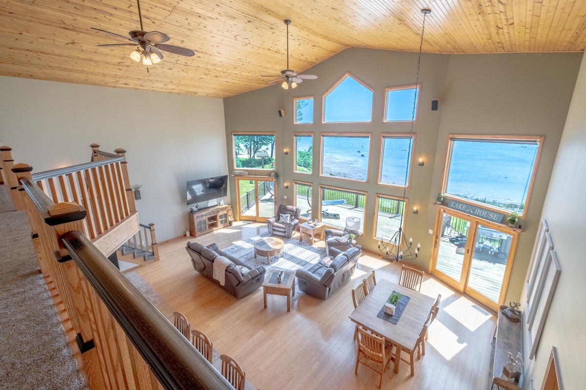 Welcome to Sand Point Shores! Private home with panoramic views of Wild Fowl Bay. -Updated home with 100 feet of beach frontage -Natural landscape that offers plenty of bird watching -Fire pit on the property and beach -kayaks -Beach chairs, wagon and beach umbrellas -Deck with lake views and seating for 12 -Fully stocked kitchen -Washer/Dryer -Outdoor hot tub -Finished basement with dart board, pool table, arcade game and Nintendo Switch -Three TVs, Wifi, desk in one room for a workspace