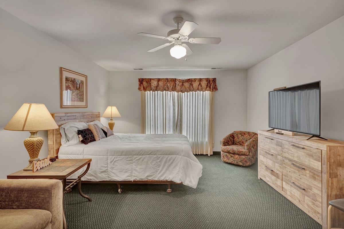 Welcome to The Sand Point Resort, your cozy Saginaw Bay getaway in Pigeon, Michigan! Whether you’re here for beach days, peaceful sunsets, or exploring nearby parks and local shops, this studio is the perfect home base for a relaxing escape. Enjoy private and public beach access just steps away, then come back to unwind in the heated community pool, hot tub, or sauna. After a day at Sleeper State Park or shopping and dining just 4 miles away, stream your favorite shows, whip up a quick bite in the kitchenette, and settle in for a restful night. This comfortable, single-story studio is ideal for couples, small families, or a friends’ getaway looking for a simple, stress-free stay by Saginaw Bay. “Vacation You” starts here! Sleeping Arrangements - Studio: 1 Queen Bed - 1 Full Sleeper Sofa Resort & Community Amenities (Open 24/7) - Heated pool (3’–5’ depth) - Hot tub & sauna - Fitness center - Private & public beach access - Community parking (up to 2 vehicles) Studio Features - Smart TV for streaming - Dining table - Free WiFi - Keyless entry - Central A/C & heating - Ceiling fans - Fresh linens & towels - Complimentary toiletries & hair dryer Kitchenette - Mini fridge - Microwave - Drip coffee maker - Cooking basics - Dishware & flatware Accessibility - Single-story layout - Step-free entry - Bathroom on first floor - Suitable for children & elderly guests Good to Know - Check-in: 4 PM | Check-out: 11 AM - No pets - No smoking - No events or parties - Additional properties available for group bookings We love the cozy, communal feel of our property, though it's important to note that sound insulation between units is modest. You may occasionally hear your neighbors or activity in the hallways. We find that most guests transition into 'vacation mode' easily, but we provide this heads-up so you can pack accordingly for a peaceful stay.