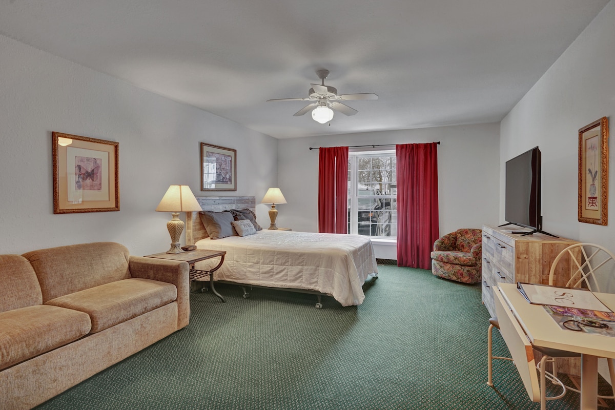 Pigeon Studio Near Saginaw Bay | Pool & Hot Tub Escape to Michigan’s beautiful Thumb and enjoy a relaxing stay just minutes from Saginaw Bay! This cozy studio at Sand Point Resort is perfect for fishing trips, beach days in Caseville, or peaceful lakeside getaways. Spend your mornings exploring marinas and scenic trails, then unwind in the heated pool, sauna, or hot tub. Whether you're here for outdoor adventure or small-town charm, this comfortable retreat has everything you need for a stress-free stay. Sleeping Arrangements - 1 Queen Bed - 1 Full Sleeper Sofa Community Amenities (Open 24/7) - Heated pool (3’–5’ depth) - Hot tub & sauna - Fitness center - Community parking (2 vehicles) Inside the Studio - Smart TV for movie nights - Dining table - Walk-in shower - Free WiFi & keyless entry - Central heating & A/C - Fresh linens, towels & toiletries Kitchenette Includes - Mini fridge - Microwave - Drip coffee maker - Cooking basics, dishware & flatware Good to Know - 2nd-floor unit with exterior staircase access - No pets, no smoking, no parties - Photo ID may be required at check-in - Check-in: 4 PM | Check-out: 11 AM We love the cozy, communal feel of our property, though it's important to note that sound insulation between units is modest. You may occasionally hear your neighbors or activity in the hallways. We find that most guests transition into 'vacation mode' easily, but we provide this heads-up so you can pack accordingly for a peaceful stay. This Saginaw Bay vacation rental is ideal for fishing enthusiasts, couples, and small families looking for a clean, comfortable stay near Caseville marinas and Michigan’s scenic shoreline.