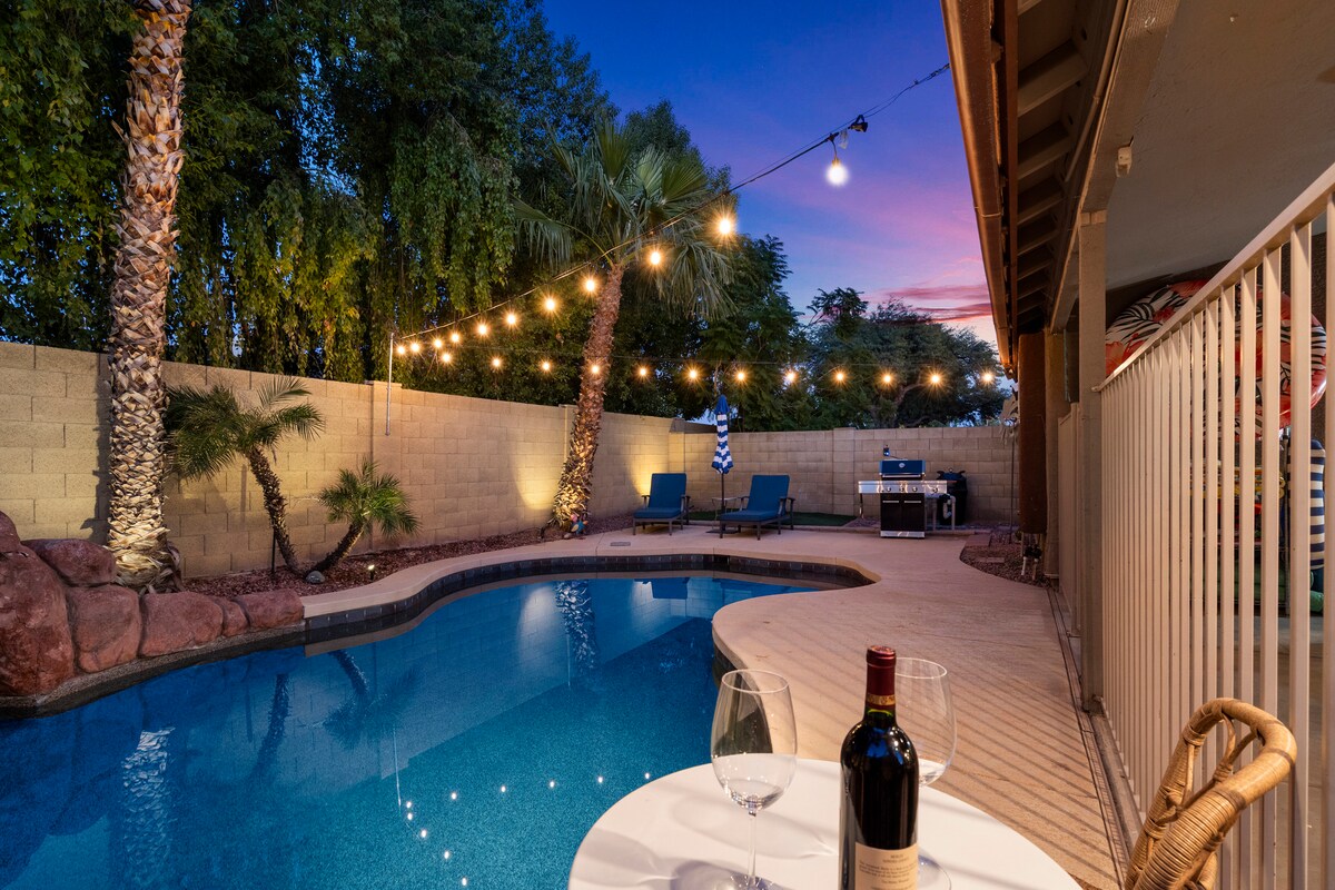 *DISCOUNTED RATES! Experience AZ in comfort! This beautifully renovated 4-bedroom home has everything you need for a relaxing getaway! With a sparkling heated pool, pool table, board games, and TVs in each bedroom, you will be endlessly entertained. Fully loaded amenities feel like home. Bring your family & friends! This cozy home and backyard are ready for AZ sunsets and great times! BOOK US NOW! **Heated pool available for a Daily Fee *Pool heating functions need to be requested for use.