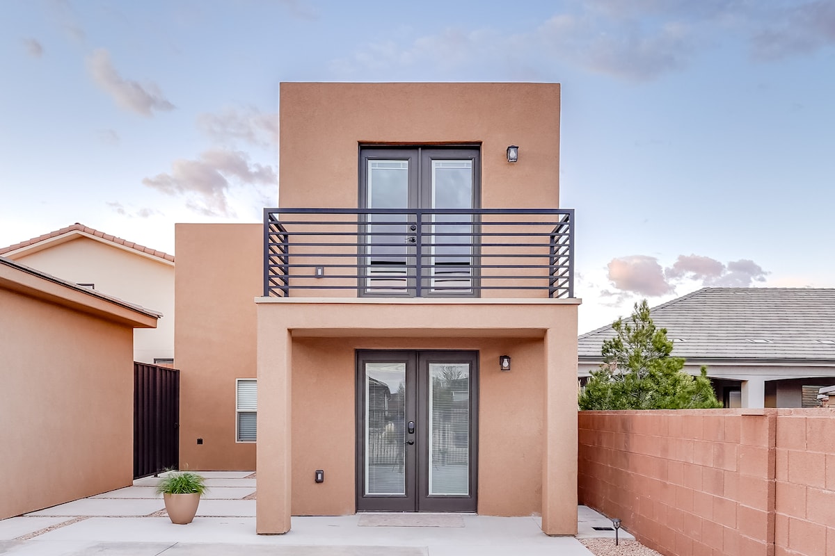 Brand New townhome is located 36 miles to Zion's National Park, and features a private outdoor hot tub, fire pit, and a heated pool! The quiet Vida Sol community is located only 2 minutes off of I-15 and 5 minutes to the St George outlet stores and Walmart/Costco. Mountain biking, walking trails and two parks nearby. ✓Private hot tub 🏊Heated Pool (Shared, heated year-round) 🛏️3BR/3BA 🛋️2 Living Rooms 👨🍳 Chef's kitchen 📶Fast/Free internet 📺Smart TV's ❄️AC 🔥Fire pit 🍖Grill 🛀Big bathtub