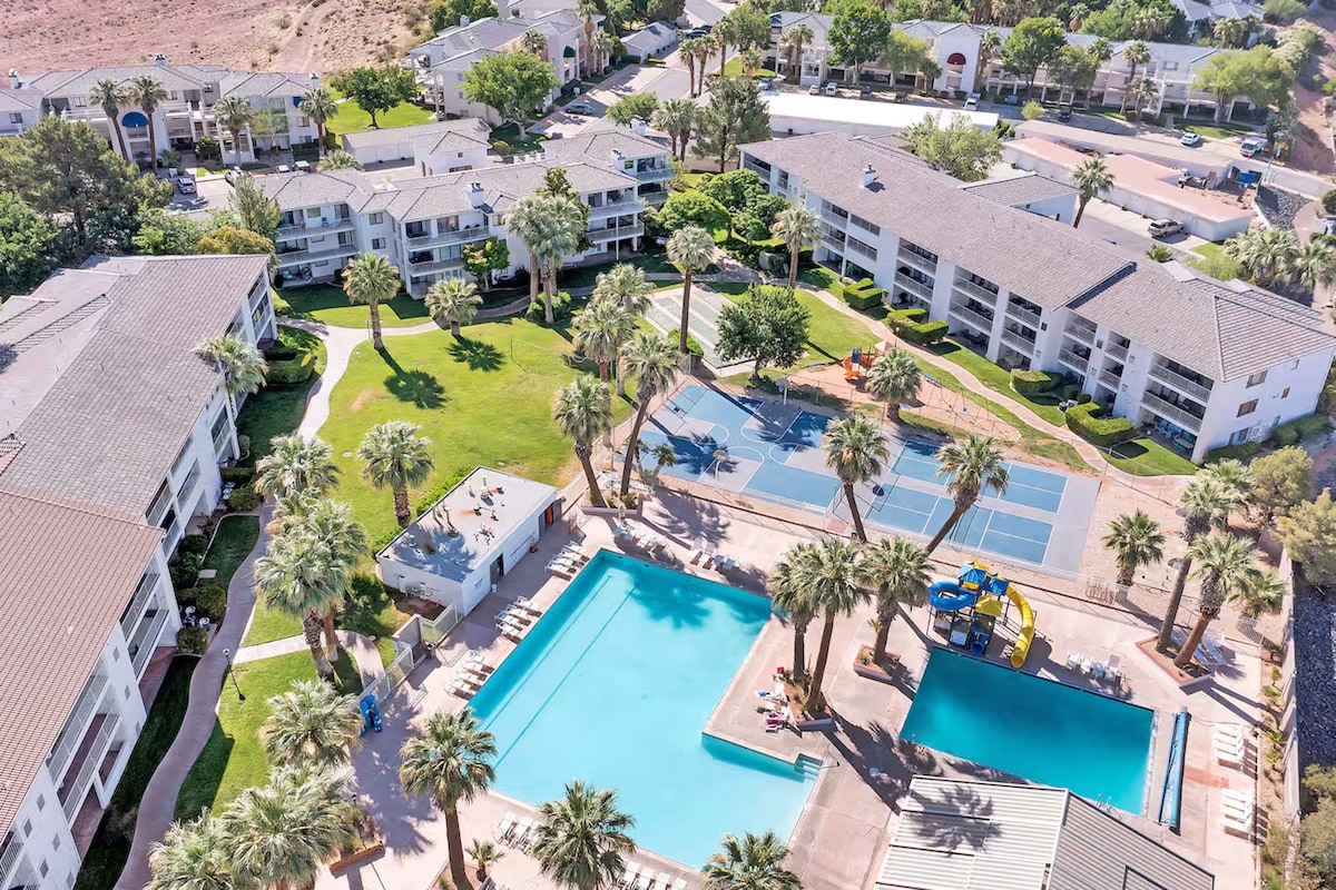 Luxury home located near Zions, Snow Canyon, and Sand Hollow. It has 4 Bdrms, 3.5 Bath, and sleeps 20 guests including a 9-bed bunkroom. The Kitchen is equipped for a home-cooked meal or grilling by the pool. Watch your favorite movie from the private pool with sliding doors to enjoy an indoor/outdoor experience. Kids will love pingpong, skeeball, pickleball courts, and community pools. Relax by our rooftop firepit and roast some mallows. A vacation experience you will always remember!