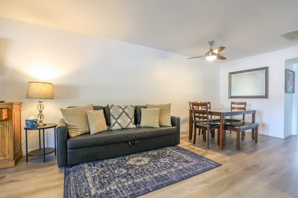 Comfortable studio apartment conveniently located near Zion National Park and Sand Hollow State Park. Leave your trailer and ride your OHV to the sand dunes. Free trailer parking (RV, horse, OHV, boat, etc.). 35 minutes to Zion National Park. RV hookups next to the casita. Horse self-boarding available upon request. Full kitchen, full-size washer dryer, and walk-in shower. Sit on your patio and take in the open farm fields in the back yard, with the mountains in the distance.