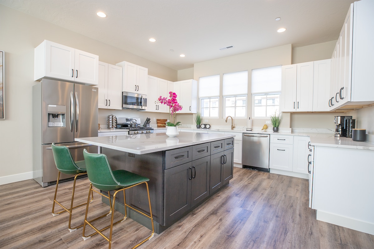 ✔️ NO CHORES ✔️ Free Wi-Fi ✔️ PRIVATE POOL and spa in the backyard, heated to 70° (option to heat to 80° for an additional $75/night) ✔️ Sleeps up to 34 guests ✔️ Two master suites with king beds, luxury linens, and private spa-like en suite bathrooms ✔️ Fully equipped kitchen ✔️ Mini golf in the backyard and a cozy under-stair playroom for kids ✔️ Access to ALL Zion Village Resort amenities