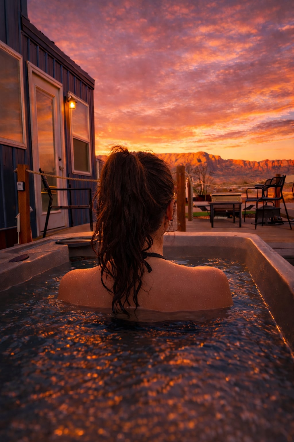 沙漠天空下的热水浴缸•锡安小屋度假屋