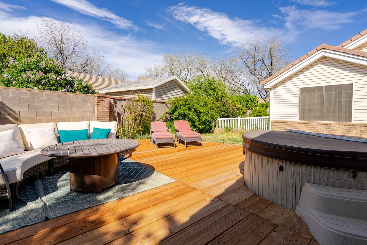 ✔️ NO CHORES ✔️ Free Wi-Fi ✔️ Sleeps up to 9 guests comfortably ✔️ 3 Bedroom, 2.5 Bathroom ✔️ Master bedroom with king-size bed and en-suite bathroom ✔️ Fully equipped kitchen with modern appliances and ample counter space ✔️ Spacious living room with TV for movie nights and entertainment ✔️ Private backyard with a relaxing hot tub under the stars ✔️ Dedicated workspace with desk and chair for remote work ✔️ Laundry room with washer and dryer for convenience