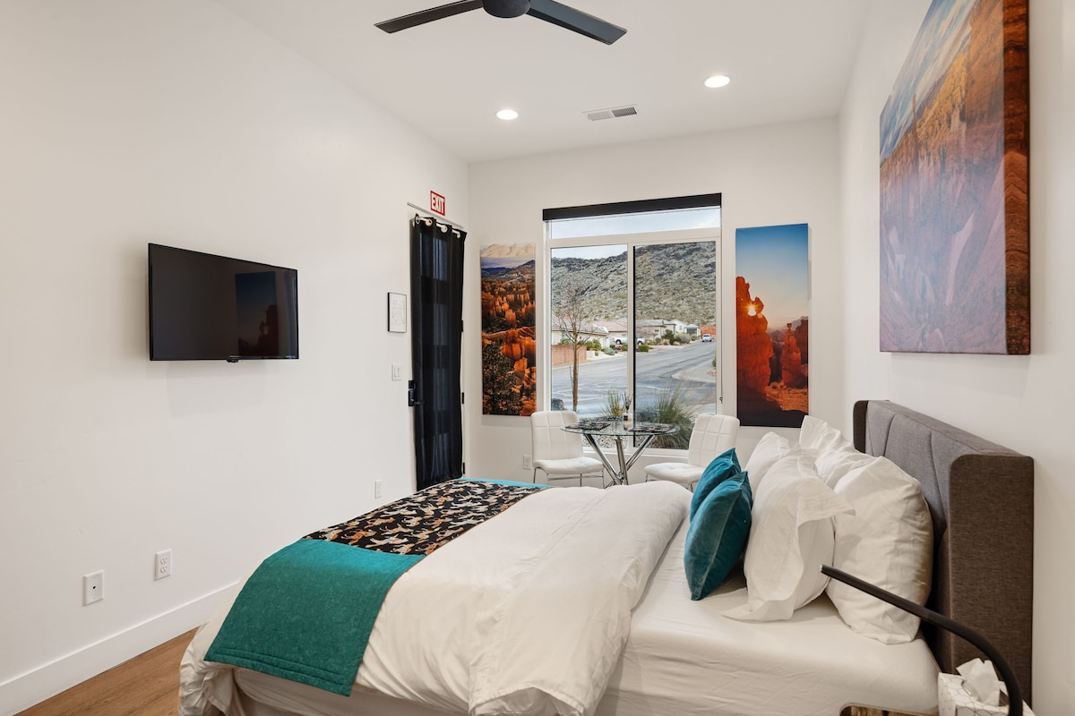 A BEAUTIFUL space with a private outside entrance that is SPOTLESSLY CLEAN. Our linens are washed in hot water with bleach and all surfaces are disinfected. This casita provides beautiful views of the surrounding mountains including Zion National Park and Pine Valley. Guests will enjoy close proximity to Zion National Park (20 Mins), Grand Canyon National Park (2.5 hrs), and Bryce Canyon National Park (2 hrs). As well as, TWO lakes (10 Mins), Sand Hollow State Park and Quail Creek State Park.