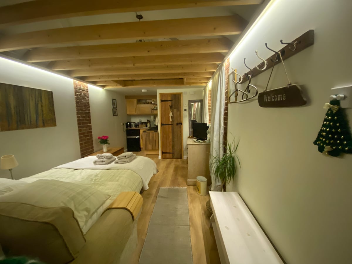 Cosy studio in garden with private entrance for 2 guests. We provide a king-size bed & separate shower-room. Outside is a private patio area. We are a few minutes walk from the village which has a variety of shops, restaurants, cafes and pubs in its high street and is situated near to the New Forest National Park. We are a short walk (10 to 15 mins) from the beach and walks in the surrounding countryside. Ideal for walkers, cyclists, birdwatchers and marine activities. We can accept one small, well behaved dog by arrangement (please text me to discuss).