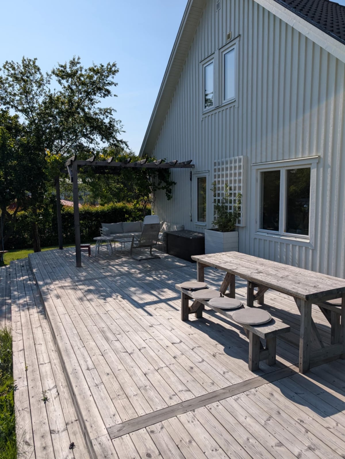 Fint och rymligt gavelradhus i ett lugnt familjevänligt område. 10 sängplatser finns, går att utöka till fler om man bäddar upp sofforna. Egen parkering med möjlighet att ladda elbil. Wifi ingår samt två st TV med ett större utbud av playtjänster. Mysig inhägnad trädgård med grill, lekstuga och fin gräsyta. Närhet till lekplats och andra spännande aktiviteter. Kontakta oss gärna för tips. Skogen ligger i anslutning till tomten. Här kan ni promenera, springa eller göra en mysig utflykt.