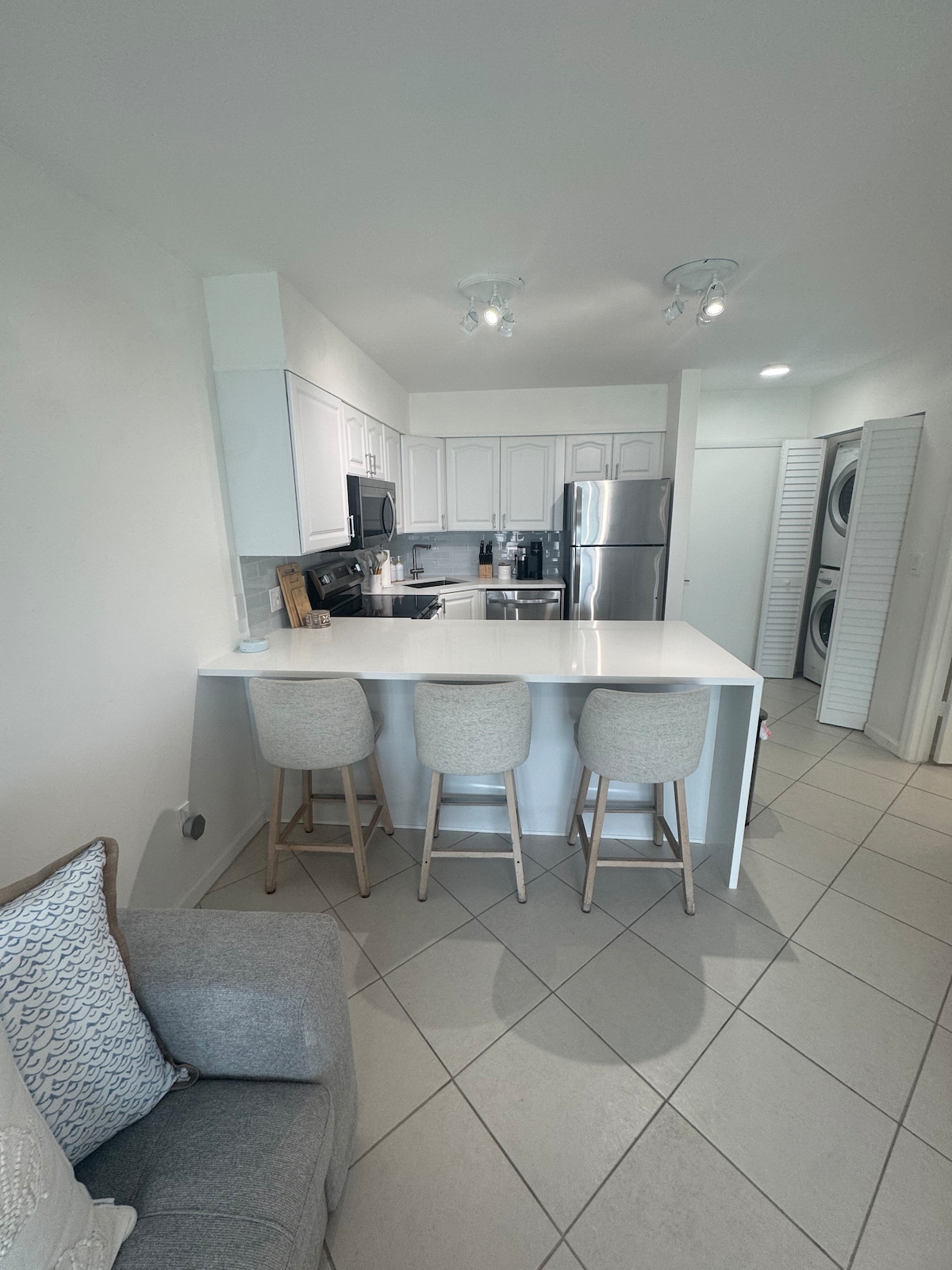 Relax with the whole family at this peaceful place to stay. This beautiful newly renovated beach condo is perfect for a family vacation. The community and environmental is extremely serene and fully equipped for a beach vacation in South Florida. It has a private beach, various pools and tennis courts, a golf course, gym, restaurant, and many more amenities. The apartment itself is fully equipped with kitchen supplies, towels, bathroom utilities, bedroom utilities, and a pull out couch.