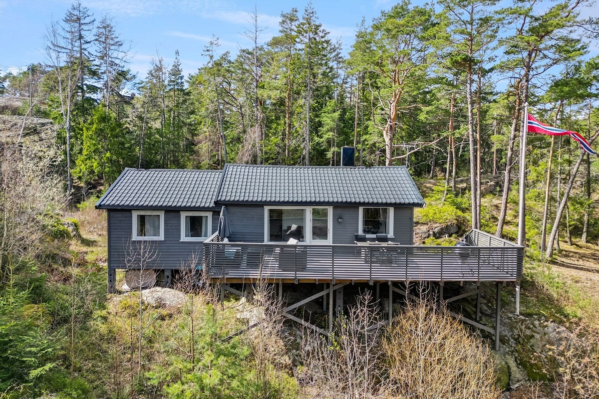 Skap minner for livet på dette unike og familievennlige stedet ved strandkanten. Her kan du ta på deg tøflene om morgenen og tusle ned til vannet for et forfriskende morgenbad, nyte sene sommermiddager på terrassen med et velutstyrte ute kjøkken m/ pizza ovn og gassgrill. Panoramautsikt og gode solforhold. Her har du uteplasser rundt store deler av hytta, som gir deg muligheten til å nyte solen fra morgen til kveld. Dette er ferieparadiset for store og små, med bademuligheter rett utenfor døren