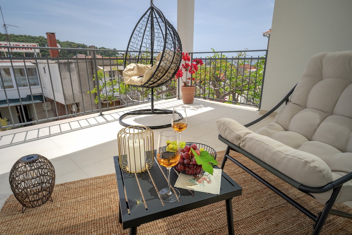 Brand New Loft Apartment which consists of big kitchen with dining zone,two bedroom,two bathroom,laundry room and balcony where you can enjoy in beautiful view of the sea and Pakleni Islands.We have available free parking space in a front of the house.The house is situated in a quiet zone ,but very close to all amenities.Center is just 10 minutes from the house and 5 minutes to the first beach,supermarkets and restaurants.