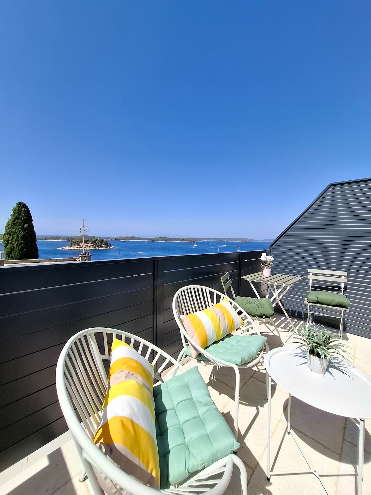 Newly refurbished apartments in a lovely family villa. The location could not be more convenient with a stone throw distance from the beach. You will enjoy your evening glass of wine al fresco with the stunning views over the sea and the islands