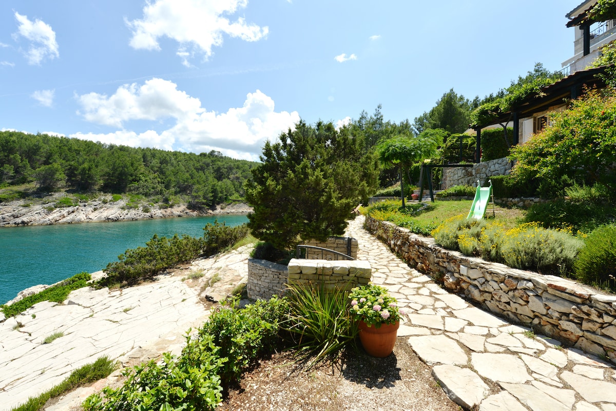 Welcome to Pine Beach Villa Hvar – a private, luxury retreat nestled just steps from the Adriatic Sea. Surrounded by lush greenery and crystal-clear waters, this exclusive villa built in traditional Dalmatian style, offers the ultimate beachfront accommodation in Hvar, combining seclusion with prime location and an unforgettable view.