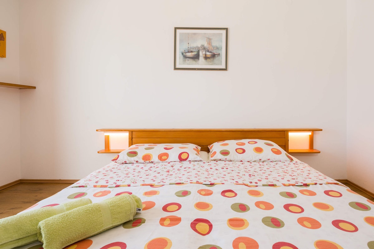 This comfort apartment is situated in ground floor and consist 1 room,kitchen,living room with sofa,led tv and bathroom with shower. Area of apartment is 45m2. Air-conditioned room features a bed 160x200.Terrace with sunbed and outside furnited for relaxed in summer days is sharing with other guests ,but dont worry terrace has 100m2 so enough space for every guests + private table for this unit in front apartment.Wi fi is availabe in all units.