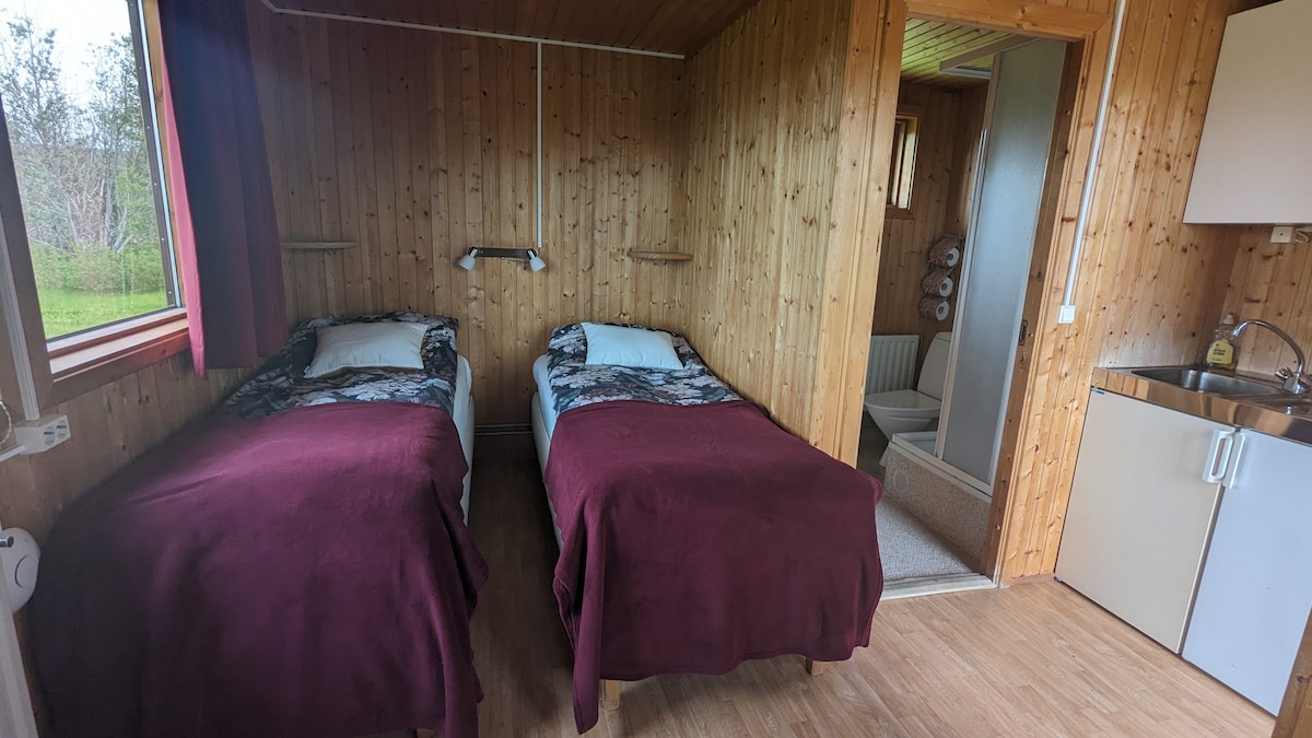 Our two bedroom cottage cuddled into nature in Húsavík suburb with a breathtaking view serves as a tiny home, away from home where you have a lot of privacy and comfort in as close proximity to the spirit of nature as possible. The location is extraordinary as it has breathtaking view, abundant bird-life, spectacular nature and wildlife, country comfort and urban activities and service in town. Walking paths are along the lakes and to surrounding places. Minimum rental is 2 nights.